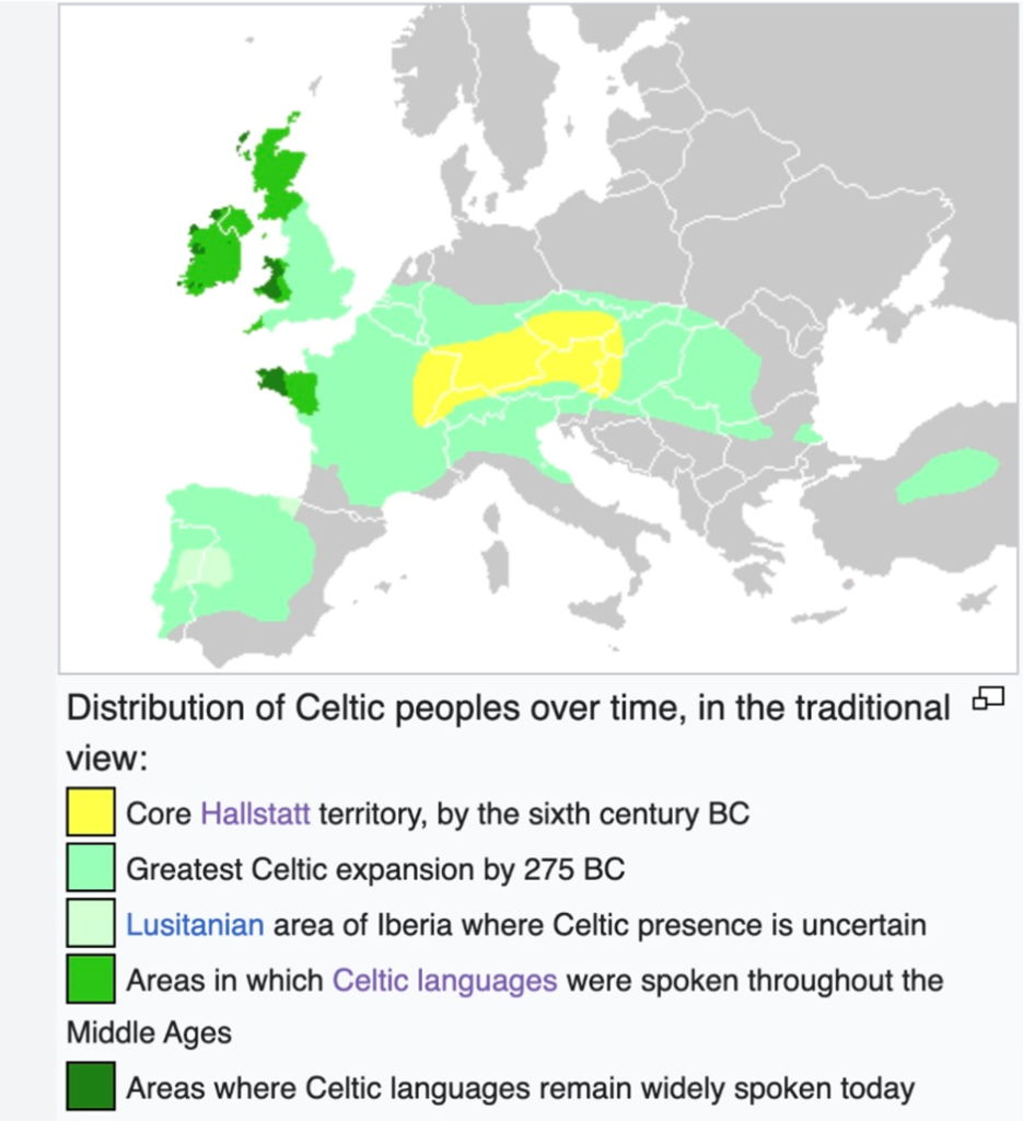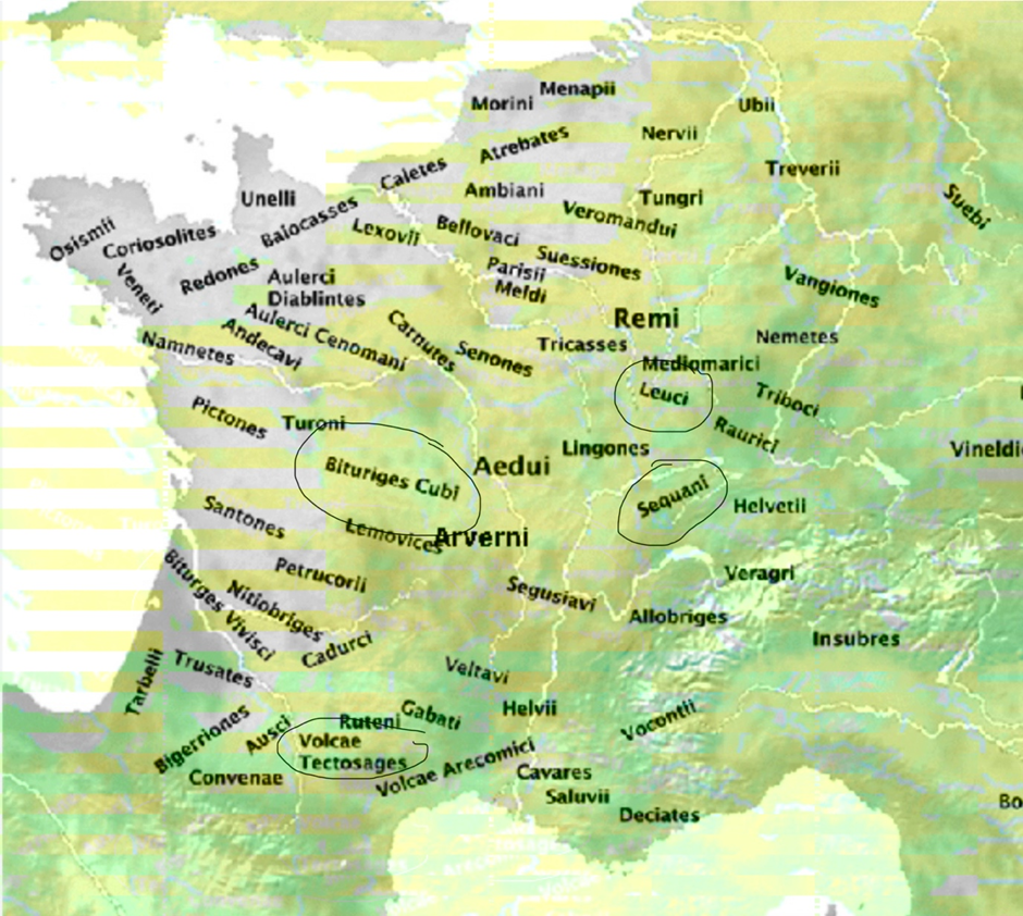 Who were ‘The Celts’? In Britain, many would guess that they were a British and/or Irish collection of Iron Age people with a rather primitive lifestyle and a strange pagan religion. However, ‘The Celts’ were actually a diverse collection of tribes who originated in central Europe around 1200 BCE and expanded into Britain, Ireland and France, as well as easterly into Turkey (Fig. 2). It is important to consider that, rather than being a homogeneous and unified group, they were composed of separate tribes and rulers, with various cultural and language similarities. These tribes had their own gods and a rich source of mythology which was passed through generations via oral tradition. Unfortunately, they did not commit any of their history to the written word and as a consequence the little of what we know about them is from other sources, such as Roman historians. Another surprise to many is that coinage was produced by the Celts. In this post we will look at the coinage produced by the Celtic tribes of Southeast England and Gaul in the second and first centuries BCE in order to assess whether this gives us any clues on the ancient Celts: who they were and what they valued (Figs 3 & 4).