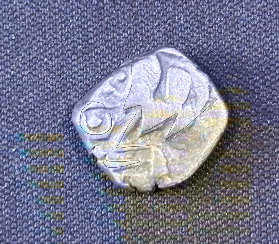 At first sight this depiction may appear rather confusing. Just what is this pattern supposed to represent? However, when we examine an example of an early Gallo- Belgic import from the Hunterian collection in Figure 7, we can see that this was originally a bust with a flamboyant headdress, which some numismatists consider to be the god Apollo.